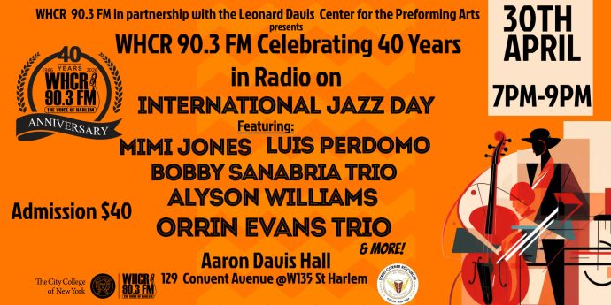 WHCR 90.3 FM Celebrating 40 Years in Radio on International Jazz Day April 30, 2026 Learn More Harlem Emergency Preparedness Day 2024 September 26, 2024 Learn More WHCR’S Popcorn Pop Up Fundraiser December 6, 2022 Learn More End of year fund drive December 6, 2022 Learn More